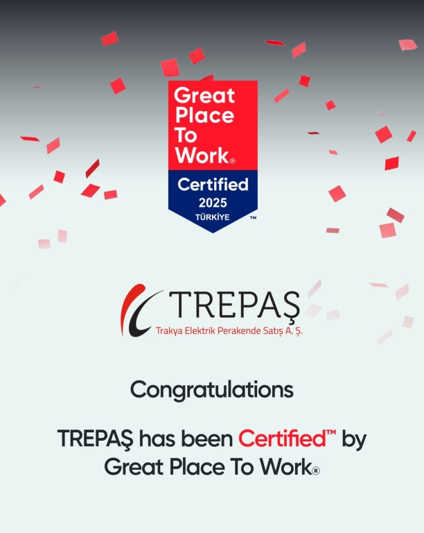 Enerji sektöründe güçlü kurumsal kimliği ve çalışan memnuniyeti ile önce çıkan Trakya Elektrik Perakende A.Ş. (TREPAŞ), 2024’ün ardından bu yıl da Great Place to Work Enstitüsü tarafından yürütülen inceleme ve değerlendirme sonucunda 2025 yılında da “Great Place to Work” sertifikasını almaya layık görüldü.